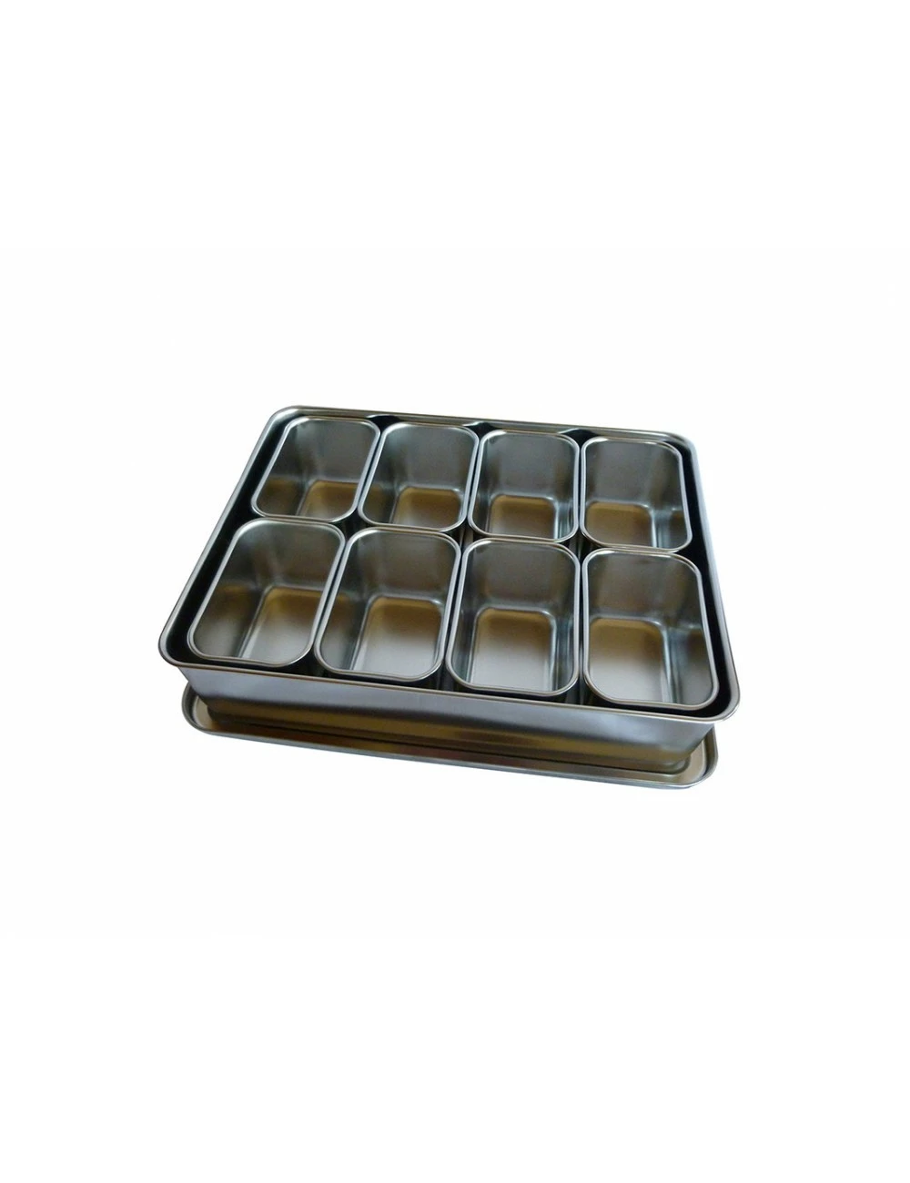Une boite à épices composée de 8 compartiments, idéale pour le rangement des épices, des aromates ou des condiments.