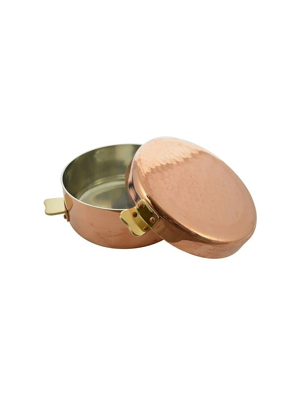 À quoi ça sert ? À mi-chemin entre la poêle et la casserole, la sauteuse est, comme son nom l’indique, l’ustensile idéal faire cuire rapidement les petites pièces de viande ou les légumes en morceaux dans un peu de matière grasse après les avoir dorés à feu vif. Ne pas confondre la sauteuse et le sautoir ou plat à sauter. Il s’en distingue par ses bords verticaux qui lui donnent l’aspect d’une large casserole basse. Avec ses poignées et son couvercle emboîtant, la casserole à pommes Anna est spécifiquement conçue pour la recette du même nom. En cuive étamé extrafort, monture bronze, couvercle. Le matériel indispensable pour la confection des fameuses pommes Anna.