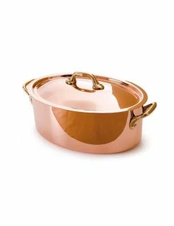 À quoi ça sert ? Il existe différentes formes de cocottes : la ronde est idéale pour les plats mijotés en sauce, tandis que l’ovale est plus adaptée aux rôtis et volailles. La taille raisonnable de la cocotte lui permet de s’aventurer à table en jouant la carte de l’intimité et du raffinement. Cocotte ovale avec couvercle pour le service table. En cuivre avec un intérieur en acier inoxydable et monture bronze. Tous les avantages du cuivre, sans les contraintes d’utilisation et d’entretien, grâce à la feuille d’inox.