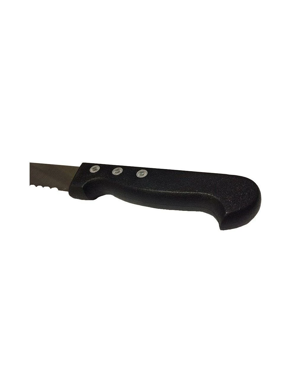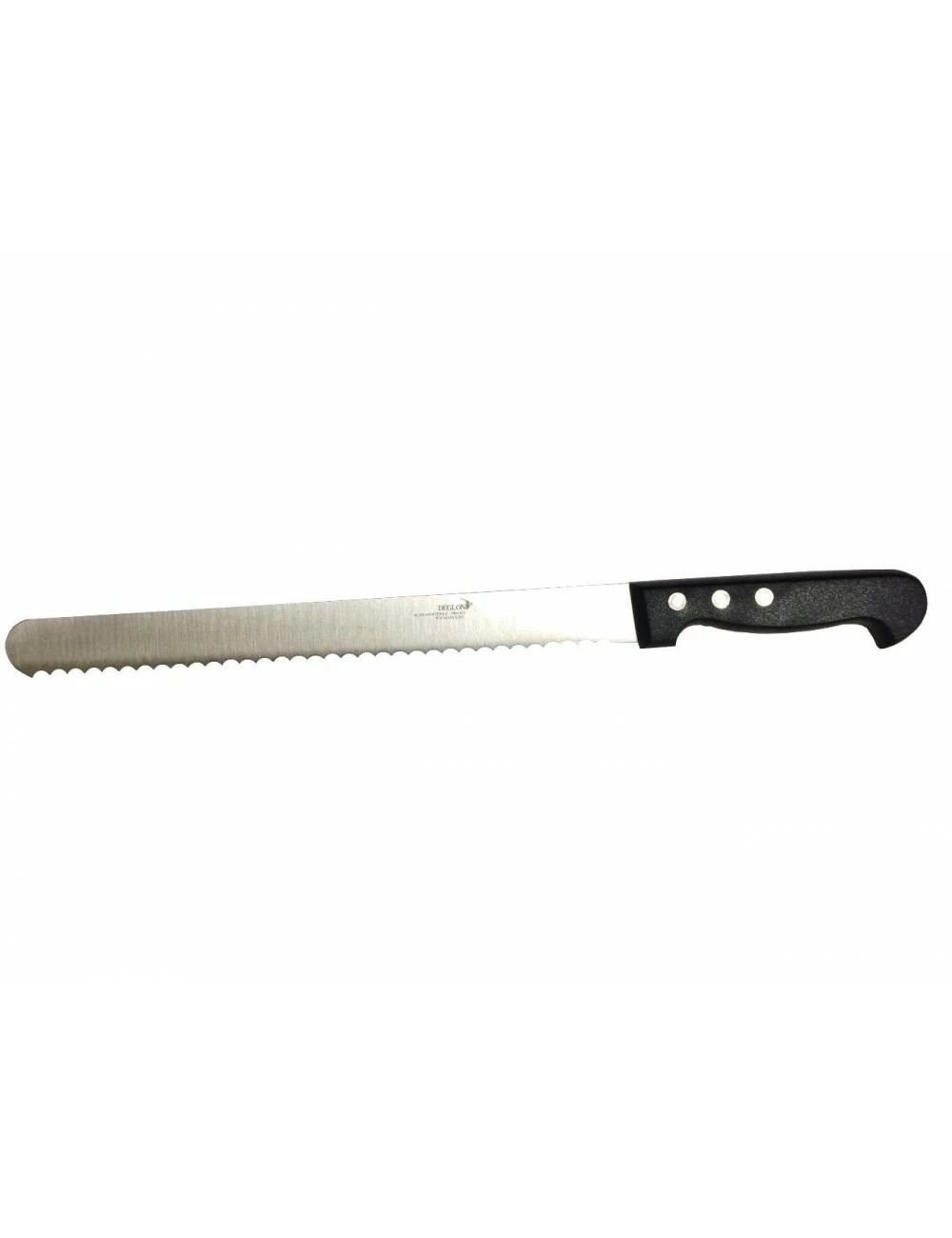 Couteau à lame acier inox, manche ABS. Ses grosses dents permettent de couper aussi les pâtisseries.