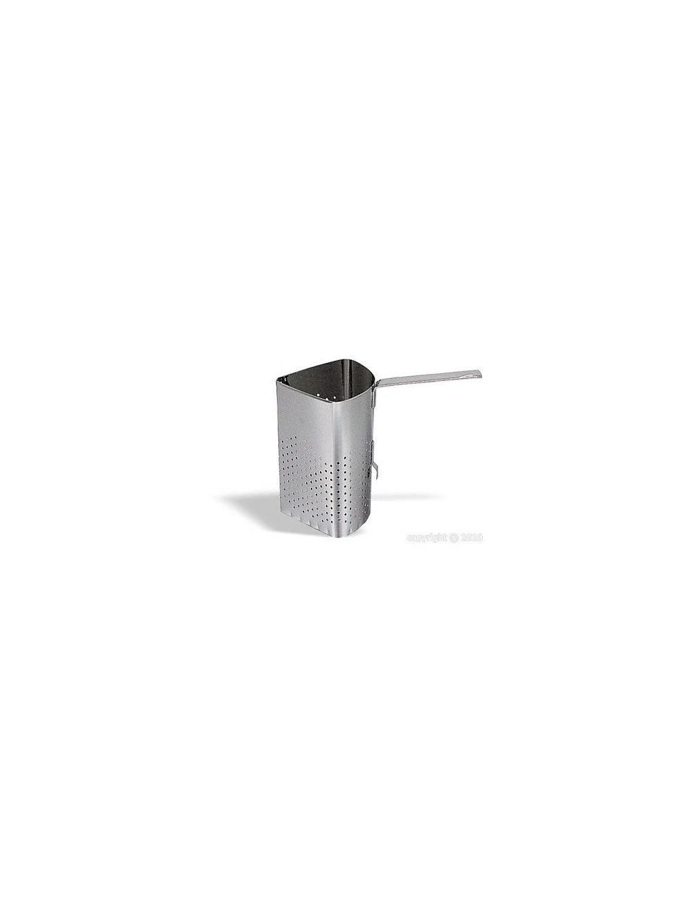 Panier en acier inoxydable de forme triangulaire à placer dans une marmite. Avec quatre paniers, la cuisson simultanée de quatre types de pates est possible. Indispensable pour les amateurs de pâtes et de riz : le panier sert aussi à égoutter. Hauteur 23 cm.