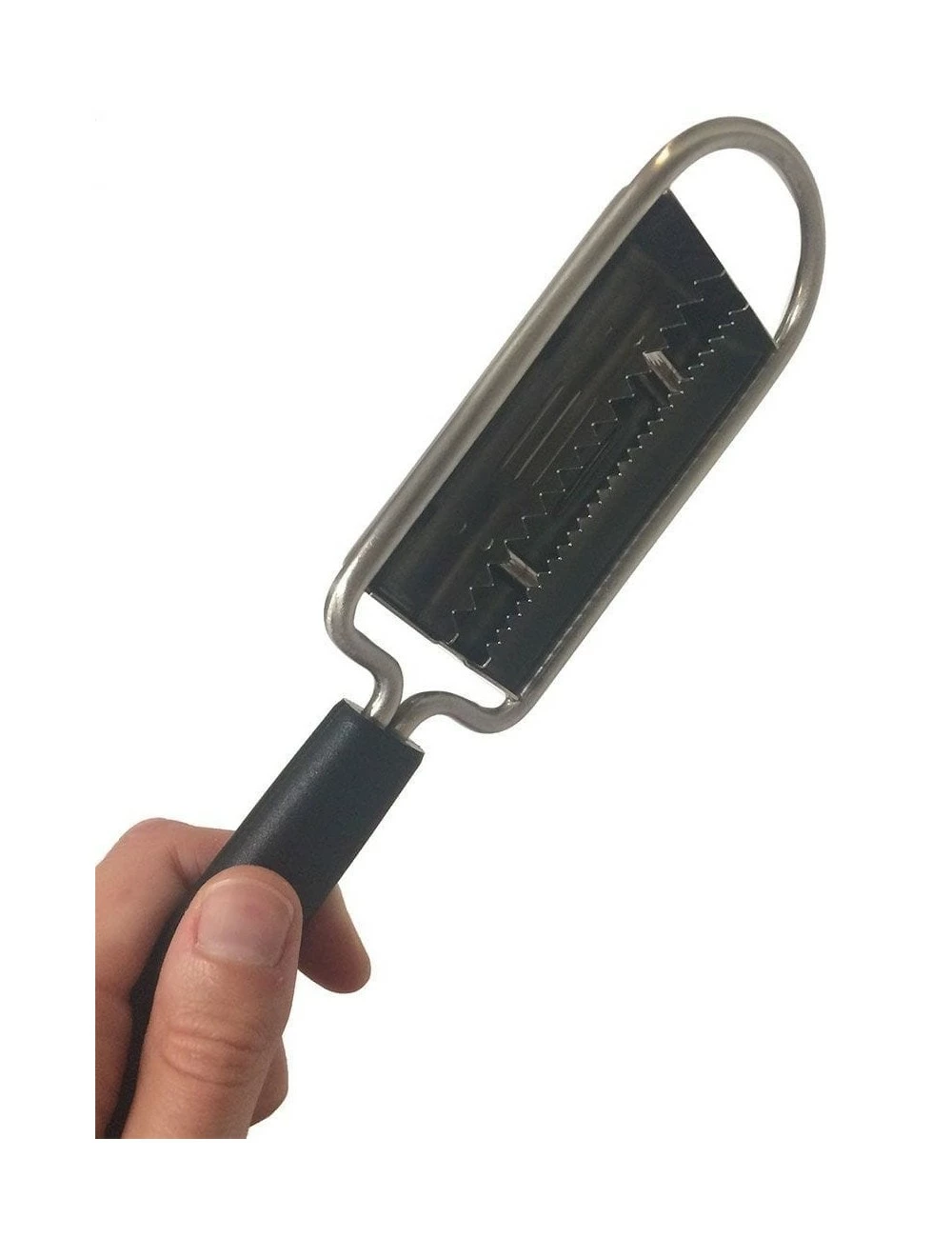 À quoi ça sert ? L’écailleur permet de retirer les écailles des poissons sans risque pour l’utilisateur de s’enfoncer une arête dorsale dans les doigts.Ecailleur avec réservoir. Ce dernier évite que les écailles volent partout. Lame en inox tandis que le manche est en plastique abs.