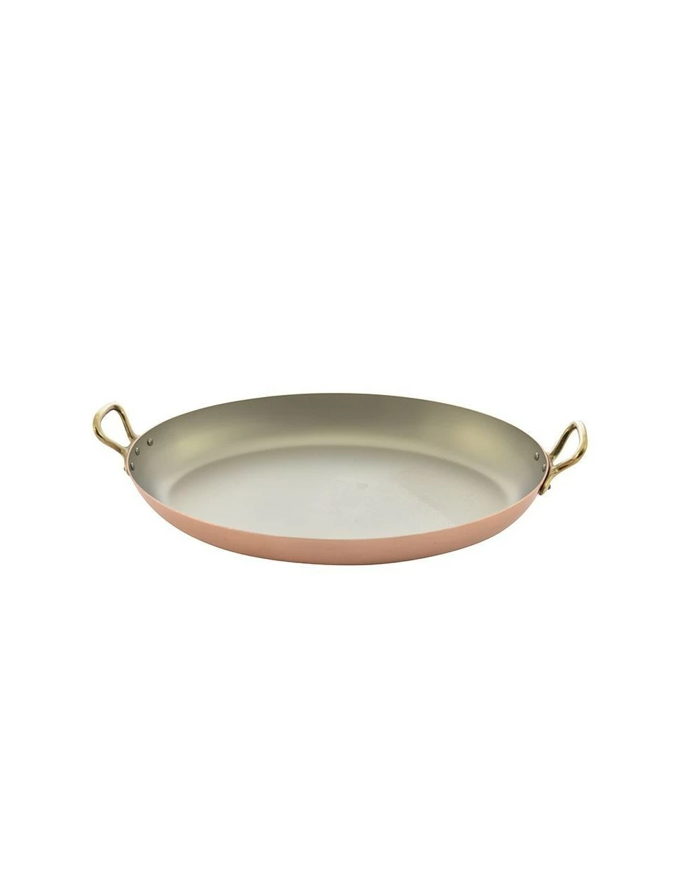 À quoi ça sert ? Dans sa version classique, la poêle sert à saisir des viandes, à cuire des légumes, des champignons, des œufs (au plat ou en omelette) ou à faire sauter des aliments, notamment les pommes de terre… Avec ses bords abaissés et son long manche ou ses poignées, elle est aussi très pratique pour réchauffer et gratiner rapidement les restes. La poêle se décline en une multitude de formes dédiées à des usages bien spécifiques. On distingue en particulier la poêle à frire, à poisson – souvent rectangulaire –, la poêle à crêpes – peu profonde et à bords droits et peu élevés –, la galétière – à fond épais et sans bords… Plat ovale en cuivre, intérieur acier inoxydable, monture bronze. Idéal pour terminer la cuisson et dresser pour le service à table.