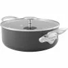 À quoi ça sert ? Dans sa version classique, la poêle sert à saisir des viandes, à cuire des légumes, des champignons, des œufs (au plat ou en omelette) ou à faire sauter des aliments, notamment les pommes de terre… Avec ses bords abaissés et son long manche ou ses poignées, elle est aussi très pratique pour réchauffer et gratiner rapidement les restes. La poêle se décline en une multitude de formes dédiées à des usages bien spécifiques. On distingue en particulier la poêle à frire, à poisson – souvent rectangulaire –, la poêle à crêpes – peu profonde et à bords droits et peu élevés –, la galétière – à fond épais et sans bords… Poêle ronde en acier inoxydable brossé, monture inox, série Excalibur. Ustensile de qualité professionnelle, à la ligne épurée. Compatible tous feux dont induction.
