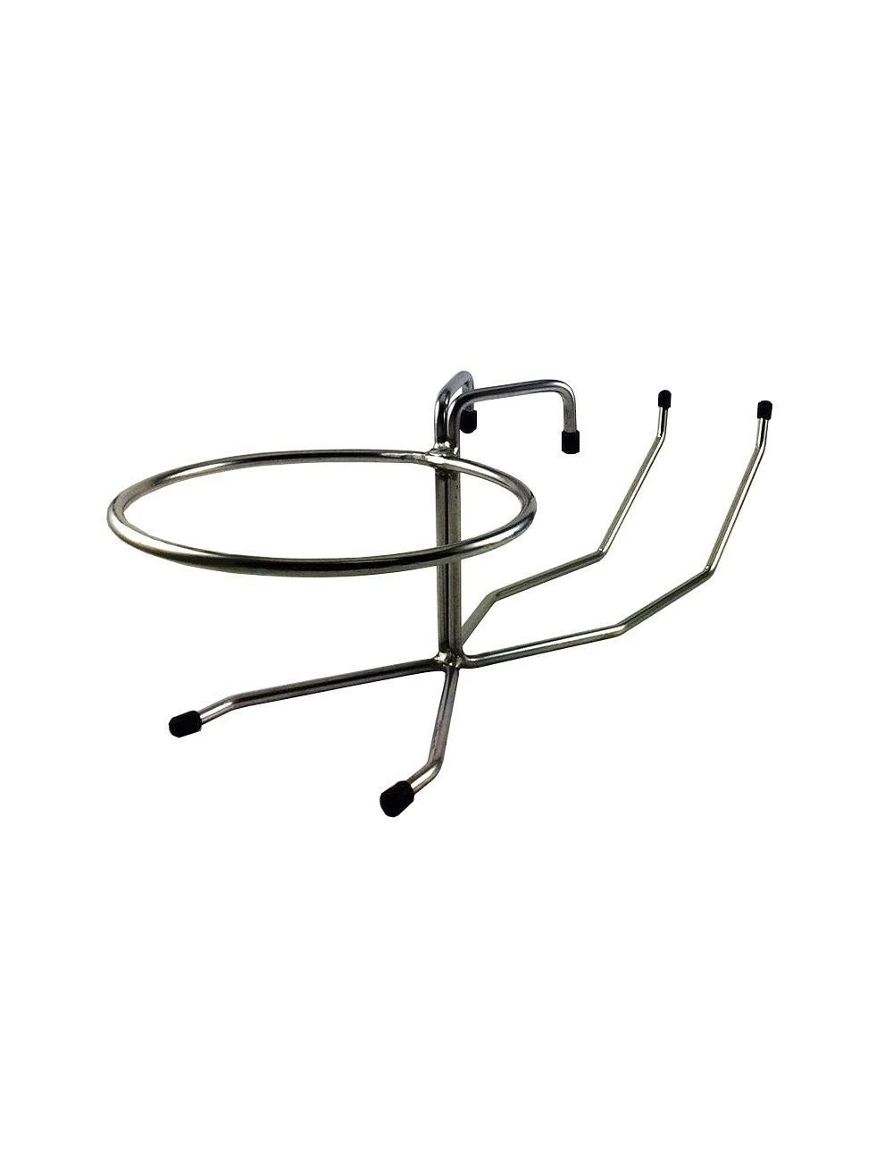 Porte seau à champagne en fil d’inox. Sa forme particulière permet de l’accrocher au bord d’une table.