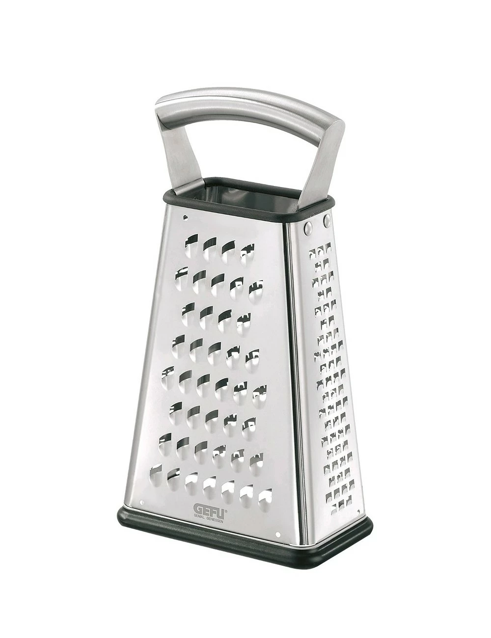 A quoi ça sert ? La râpe 4 faces dispose de la technologie surface glide qui permet de râper davantage avec moins d’effort. Cinq surfaces de râpage : fine pour les zestes de citron et le parmesan, grossière pour la plupart des fromages et légumes, ultragrossière pour les fromages à pâte molle, trancheuse pour divers légumes et gingembre en prime qui râpe parfaitement les racines fraîches de gingembre tout en laissant les fibres indésirables de côté.