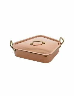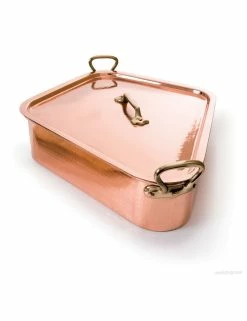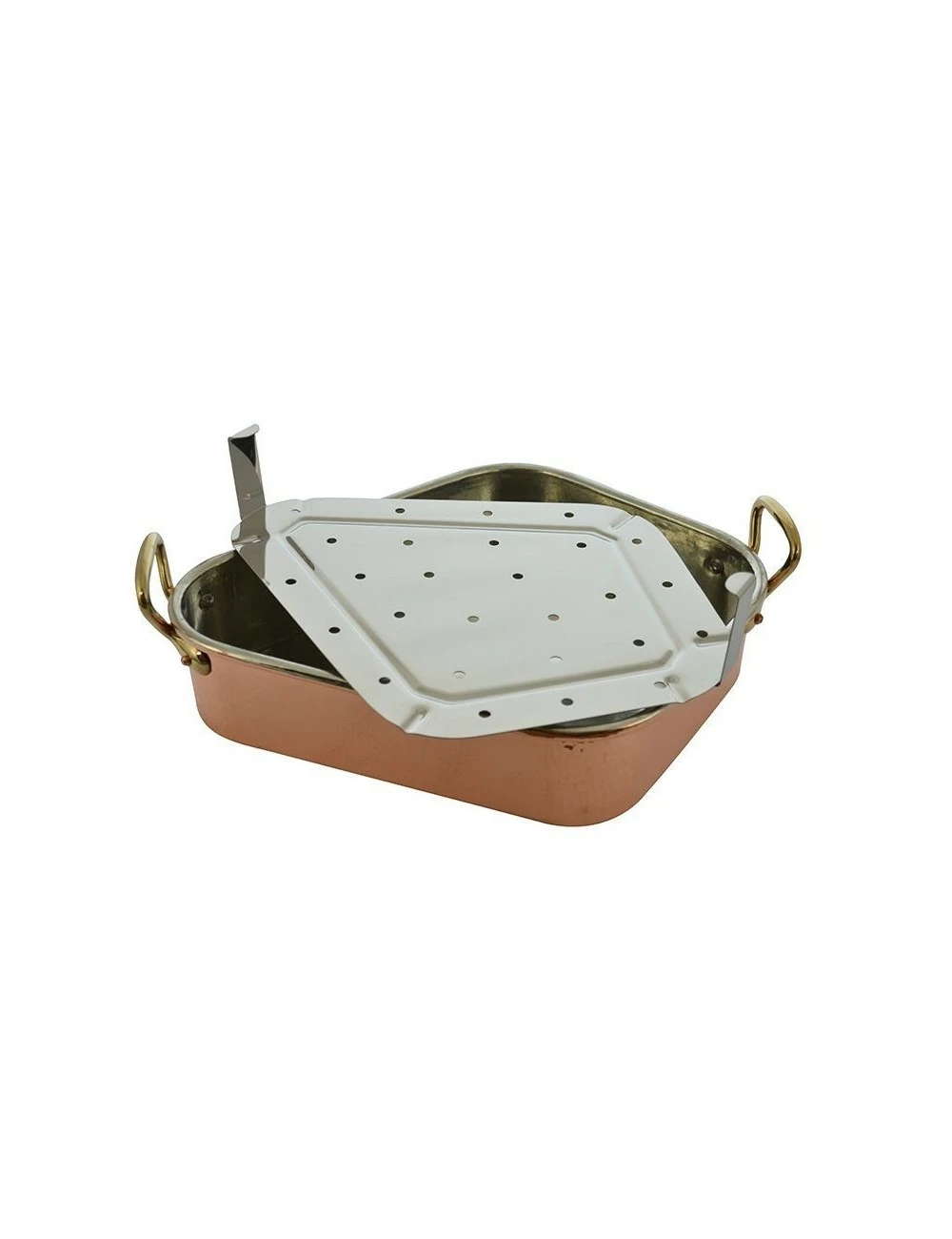 Turbotière cuivre étamé extrafort, monture bronze. Sa forme en losange en fait un récipient idéal pour la cuisson des poissons plats. Longueur 50 cm.